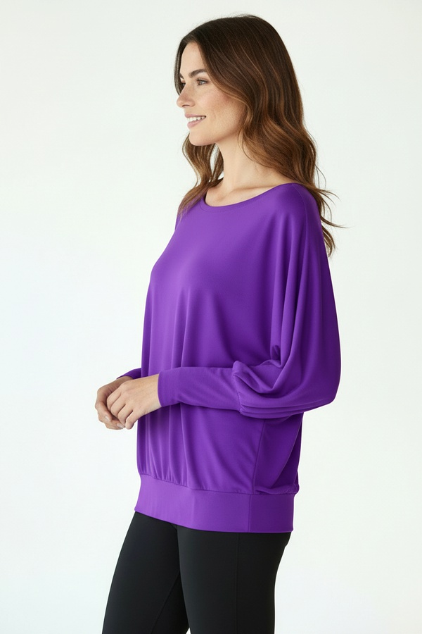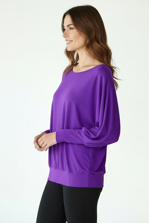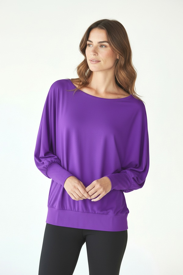 Fioletowa bluzka kimonowa do tańca LATINA to nowość stworzona z myślą o kobietach, które cenią swobodę ruchów, komfort oraz kobiecy styl podczas aktywności. Luźny fason inspirowany krojem kimona pięknie układa się na sylwetce i efektownie pracuje z ciałem w trakcie tańca, fitnessu czy zajęć ruchowych.To model idealny zarówno na salę taneczną, jak i na trening czy aktywny dzień w wygodnym, sportowym wydaniu.